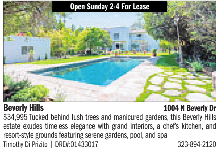 $34,995 Tucked behind lush trees and manicured gardens, this Beverly Hills estate exudes timeless elegance with grand interiors, a chef’s kitchen, and resort-style grounds featuring serene gardens, pool, and spa