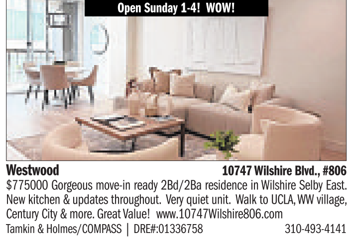 $775000 Gorgeous move-in ready 2Bd/2Ba residence in Wilshire Selby East. New kitchen & updates throughout. Very quiet unit. Walk to UCLA, WW village, Century City & more. Great Value! www.10747Wilshire806.com