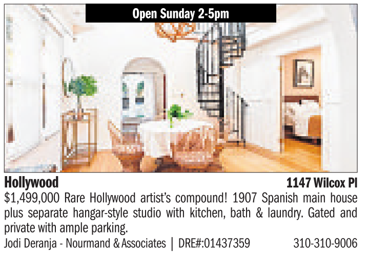 $1,499,000 Rare Hollywood artist’s compound! 1907 Spanish main house plus separate hangar-style studio with kitchen, bath & laundry. Gated and private with ample parking.