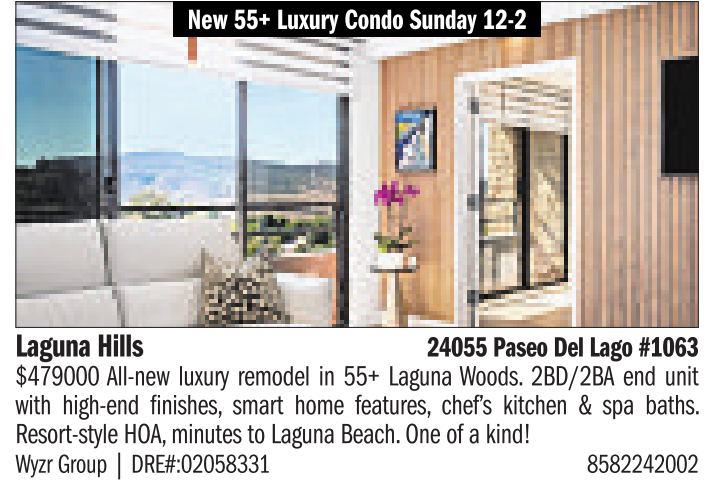 $479000 All-new luxury remodel in 55+ Laguna Woods. 2BD/2BA end unit with high-end finishes, smart home features, chef’s kitchen & spa baths. Resort-style HOA, minutes to Laguna Beach. One of a kind!
